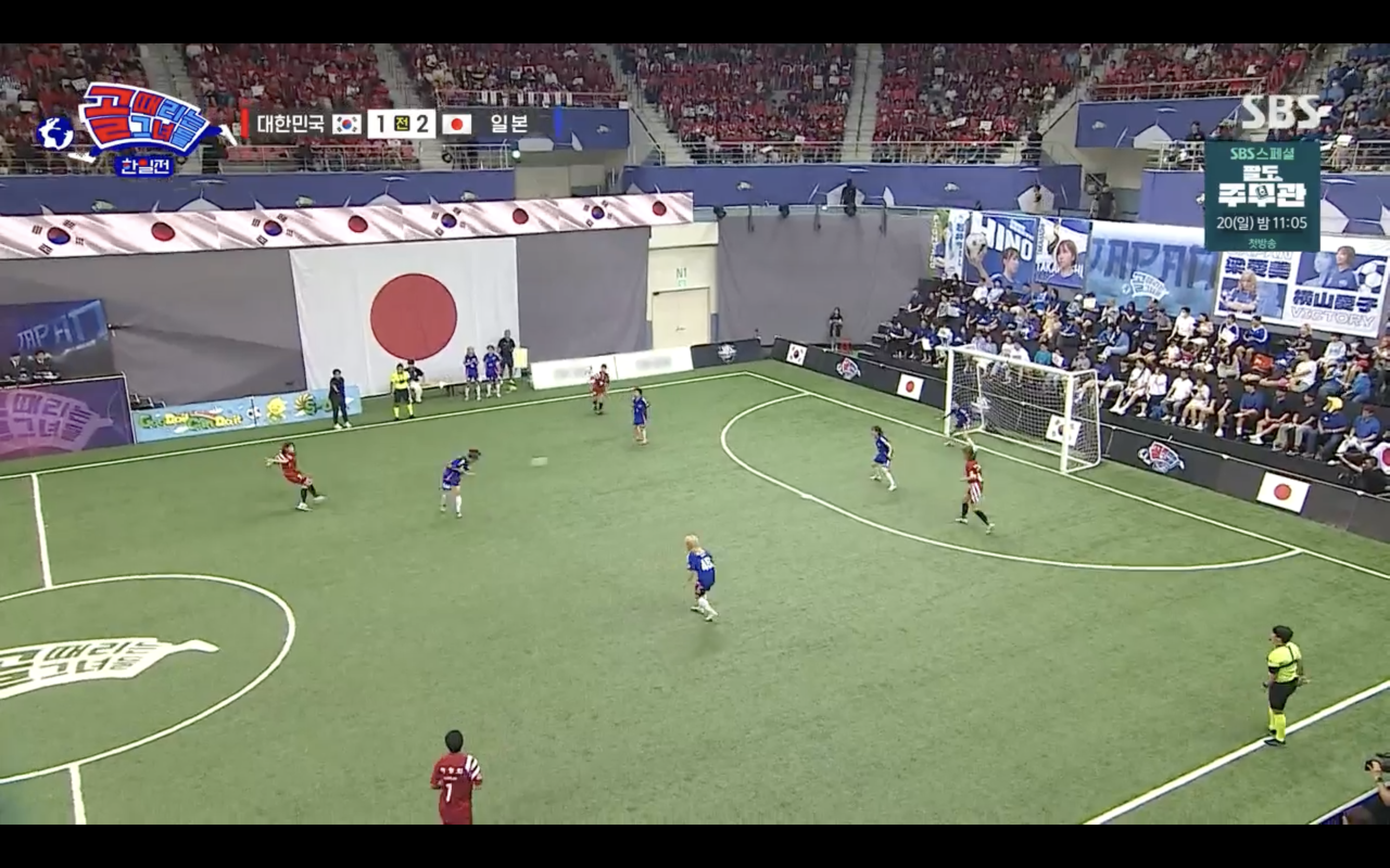 일본 팀은 뛰어난 기량을 자랑하는 선수들로 큰 주목을 받았습니다. 그들은 전 피겨 스케이팅 국가대표 출신인 타카하시 나루미와 ‘리프팅 천재’로 알려진 여배우 마시마 유 등 다양한 분야에서 활동한 스타 선수들로 팀을 꾸렸습니다. 이 선수들은 피지컬과 기술적인 역량을 경기 내내 발휘하며 한국 팀에게 어려운 상대가 되었습니다. 타카하시 나루미의 스피드와 마시마 유의 섬세한 볼 컨트롤은 일본 팀이 초반부터 경기를 유리하게 이끌어 가는 중요한 요소였습니다. 일본의 다채로운 선수 구성이 경기의 긴장감을 더욱 고조시키며 관중들의 시선을 사로잡았습니다.